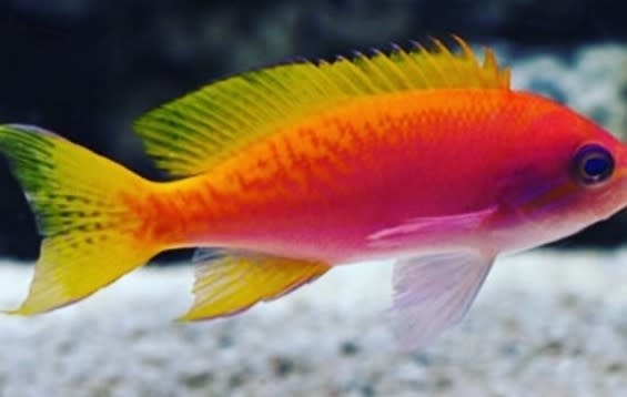 QUICK INFO: Minimum Tank Size: 70 gallons Care Level: Moderate Temperament: Semi-aggressive Reef Compatible: Yes Max. Size: 5" Diet: Carnivore Origin: Maldives Family: Serranidae The Bimaculatus Anthias is also known as the Twospot or Twinspot Anthias. The males have one or two spots on their dorsal fin, with a pink head that fades to a vibrant red extending to the tail. Irregular pink bars run horizontally along the body, making this fish one of the most gorgeous of all Anthias. The females of the species are pink with a yellow dorsal, anal and caudal fin. These unique Anthias are beautiful fish for the fish only, invertebrate, or reef aquarium. The Bimaculatus Anthias does best when kept with its own species in a tank of at least 70 gallons. A marine species, the Anthias dwells in the middle of a tank but appreciates the availability of several hiding places. Anthias species all share the trait of being hermaphroditic. If a dominant male perishes, the largest female of the group will often morph to take its place. The diet is consistent with other members of the Anthias group - zooplankton and floating filamentous algae. In the aquarium, it should be fed a varied diet of mysis shrimp, vitamin-enriched brine shrimp, frozen preparations and other meaty items for zooplankton feeders, and small quantities of food several times per day. Approximate Purchase Size: Small: 2" to 3" Medium: 3" to 4" Large: 4" to 5"