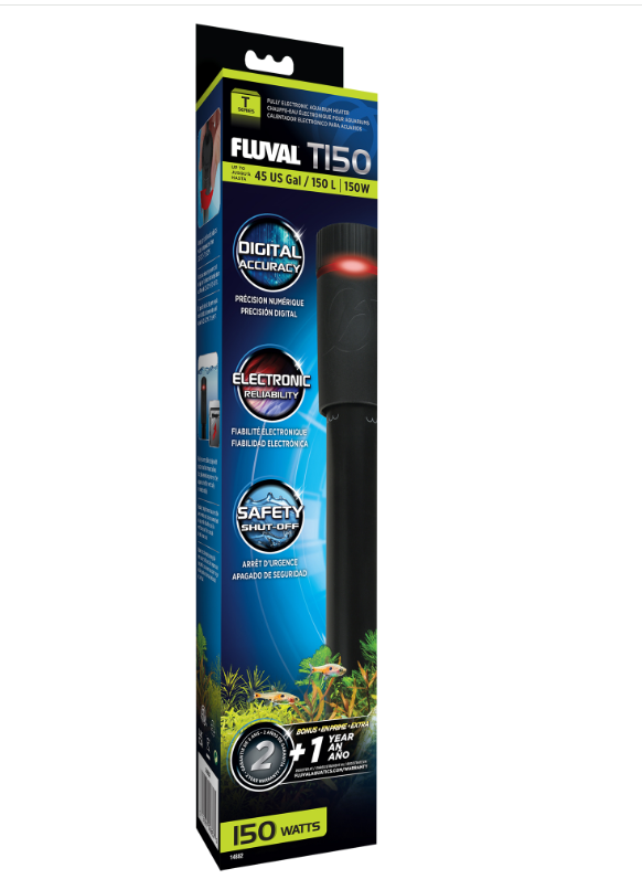 - 150-Watt heater designed for aquariums up to 45 US Gal / 150 L