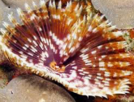 QUICK INFO: Care Level: Easy Temperament: Peaceful Reef Compatible: Yes Waterflow: Medium Max. Size: 7" Diet: Omnivore Supplements: Calcium, Trace Elements Origin: Hawaii, Indo-Pacific Family: Sabellidae The Feather Duster, also known as Giant Feather Duster, has a fan-shaped crown (radiole) that is tan or orange with brown band colorations. The radiole of some species from certain locales may be up to 7 inches in diameter, or of brighter colors. The Feather Duster uses the radiole to filter out small floating organisms, which it directs toward its mouth, located at the center of the crown. It protects its segmented body by secreting a parchment-like tube to cover itself. When it is disturbed, it can quickly pull in its radiole into the tube. If it is severely stressed, it will discard its crown, growing it back later. The Feather Duster is usually found in the coral rubble at the base of the reef aquarium, with some of the rubble being incorporated into its parchment-like tube. It needs to be housed in a well-established reef system as it is dependent upon plankton for its diet. It is very intolerant of copper-based medications. Supplemental feeding of phytoplankton and liquid organic foods should be provided. Approximate Purchase Size: 2-1/4" to 3-1/2"