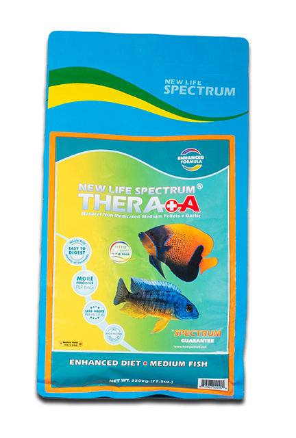 Thera+A enhanced diet takes our nutrient-dense, guaranteed-results recipe for the Spectrum Nutrition Formula and combines it with extra garlic — which has been shown to increase parasite resistance and the immune system in tropical fish. Garlic is also a great attractant. Beyond this, added Omega-3 and higher protein ensures that even if your stressed or newly acquired fish don’t have a full appetite, they get what they need. Non-medicated.
